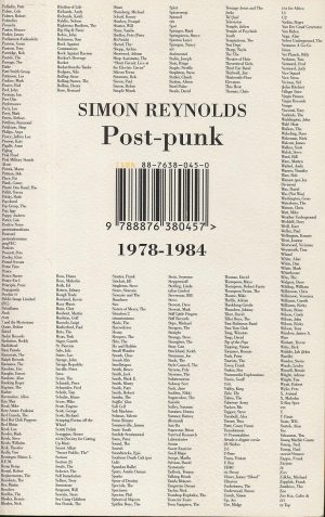 La seconda infornata ha invece origine circa 15 anni fa. Il testo che ha dato via a tutto è stato “Post-Punk 1978-1984”, di Simon Reynolds: libro ricevuto in dono dalla mia signora, e in molti sensi inaspettato. Perché io, del “post punk”, ne sapevo poco o nulla: e lei, invece di lasciarmi cullare nella mia confort zone, sceglie spesso di mescolarmi le carte, spingendomi a occuparmi di cose diverse. E’ stata una piccola rivelazione: non tanto per il genere trattato, ma per le prospettive che mi ha aperto… Due, soprattutto: che un stile o una scuola nascessero sempre, più che da illuminazioni individuali, da un complesso intrico di storia, geografia, politica, aneddoti individuali ed economia; e che anche un saggio critico potesse, alla fine, rivelarsi appassionante come un romanzo d’avventure.
